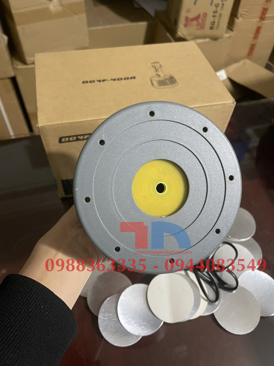 Tất cả gói gọn trong 1 đầu chụp- sử dụng cho loại seal có đường kính nhỏ dưới 9cm. Nếu trước đây bạn đang sử dụng máy seal có cục máy cồng kềnh thì đây là giải pháp mới cho bạn, máy seal không có cục máy, chỉ có đầu chụp.